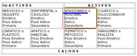 colérico (E-A-P), sentimental (E-nA-S), nervioso (E-nA-P), flemático (nE-A-S),
